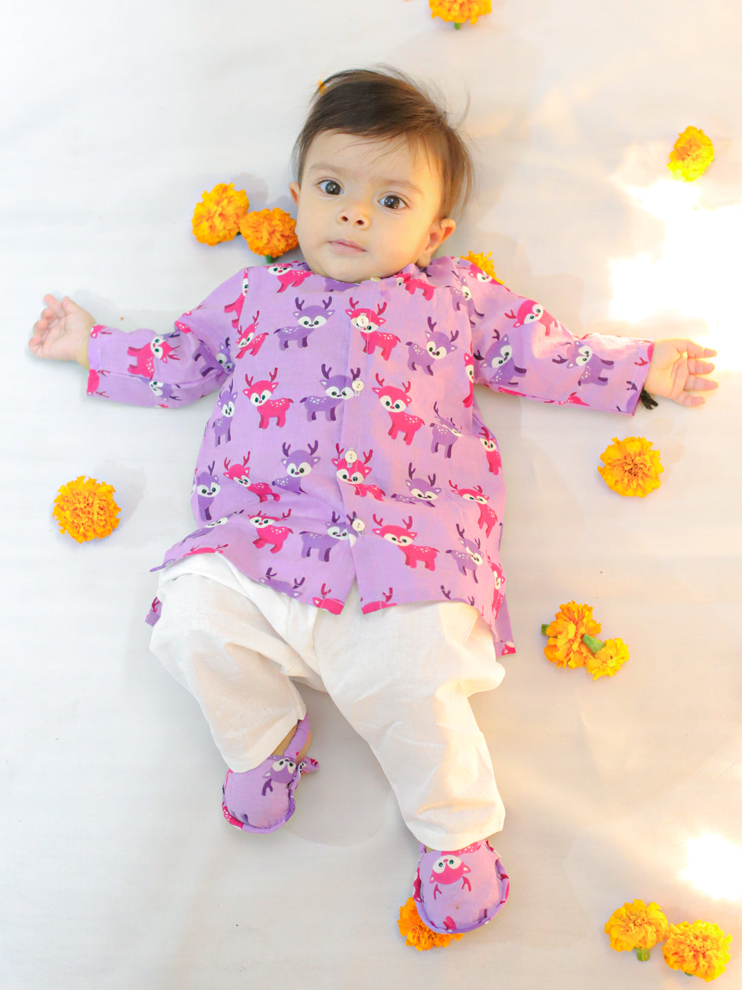 Bownbee Boys Pure Cotton Kurta Payjama For Infants - Purple