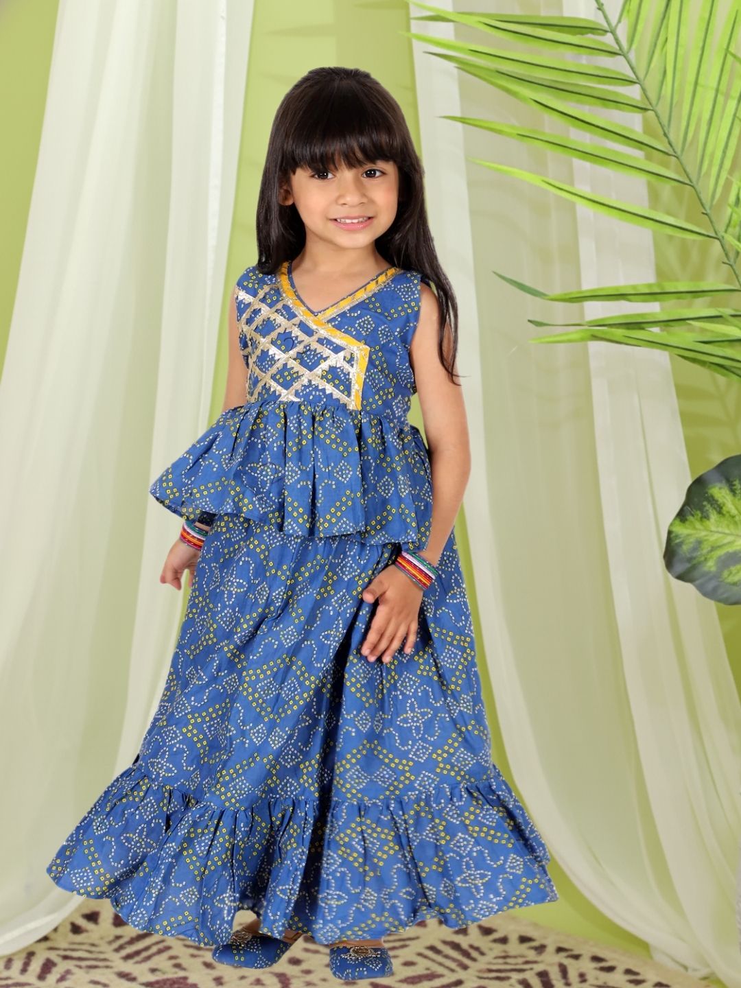 BownBee Girls Pure Cotton Frill Lehenga Choli - Blue