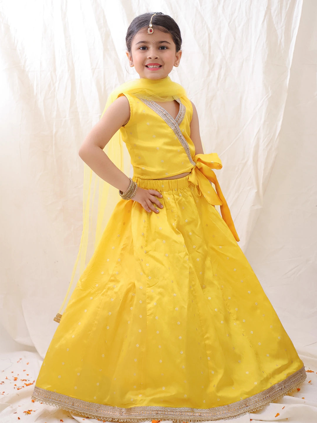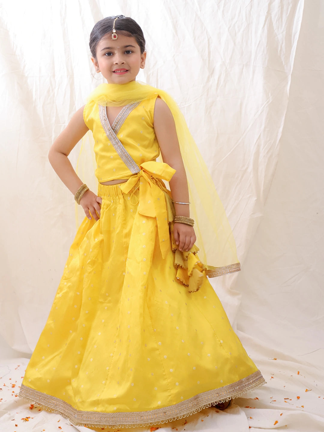 BownBee Wedding Sleeveless Tafetta Woven Lehenga Choli & Dupatta set -Yellow