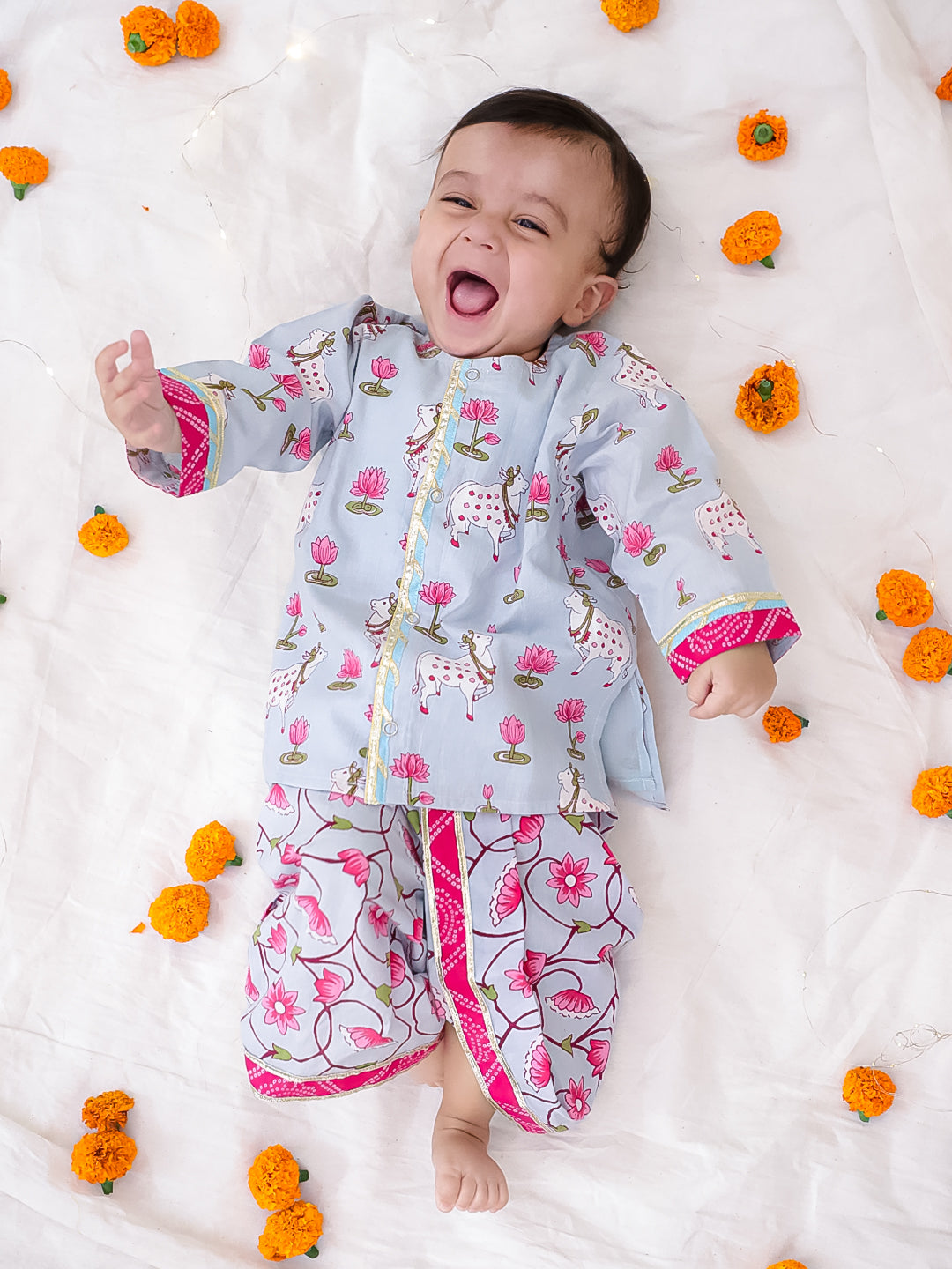 BownBee Pure cotton Long Sleeves Kurta Dhoti Set For Infant Boys - Sky blue (Pre-Order)
