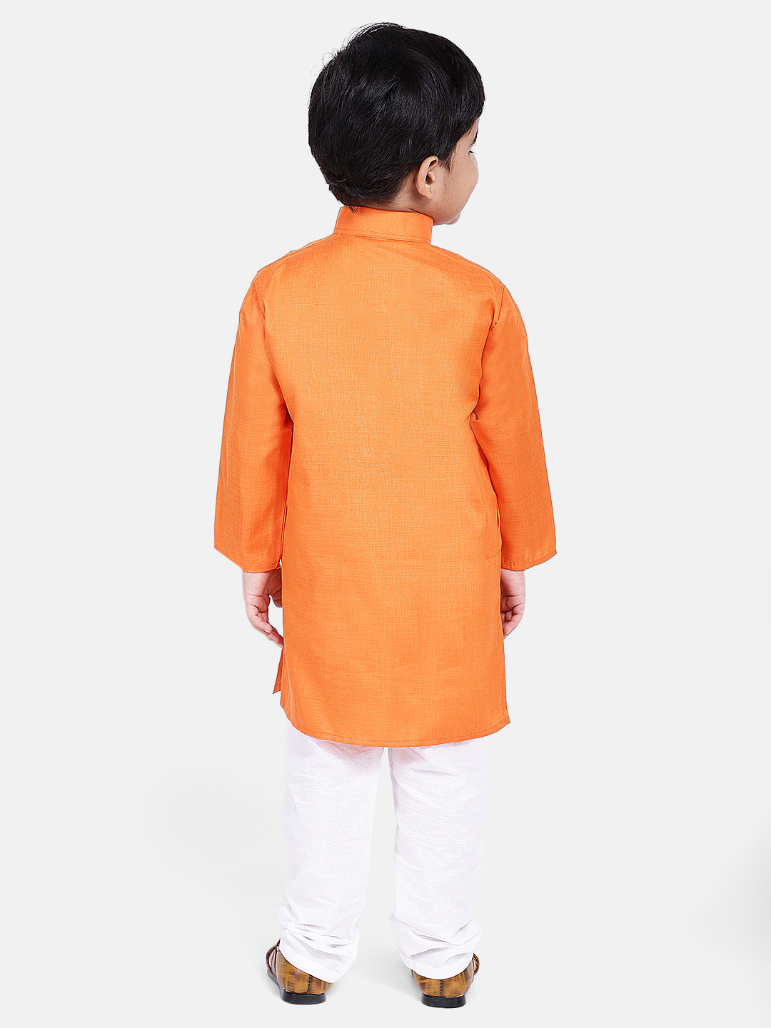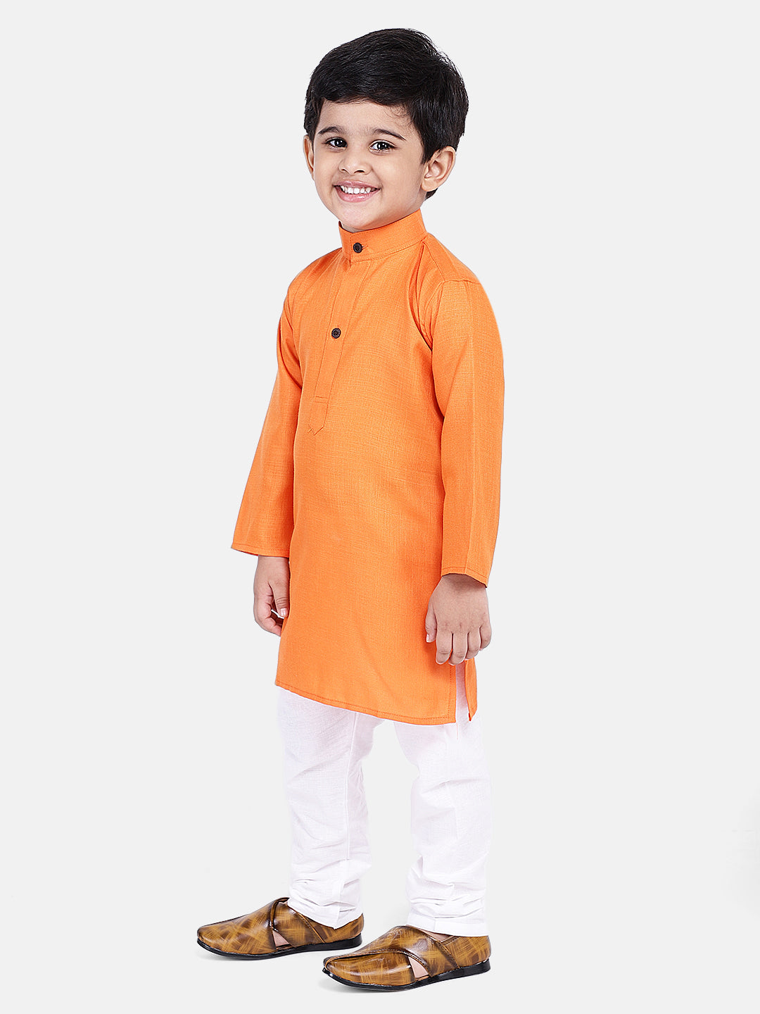 BownBee Boys Solid Full Sleeves Kurta and Pyjama Sets Orange