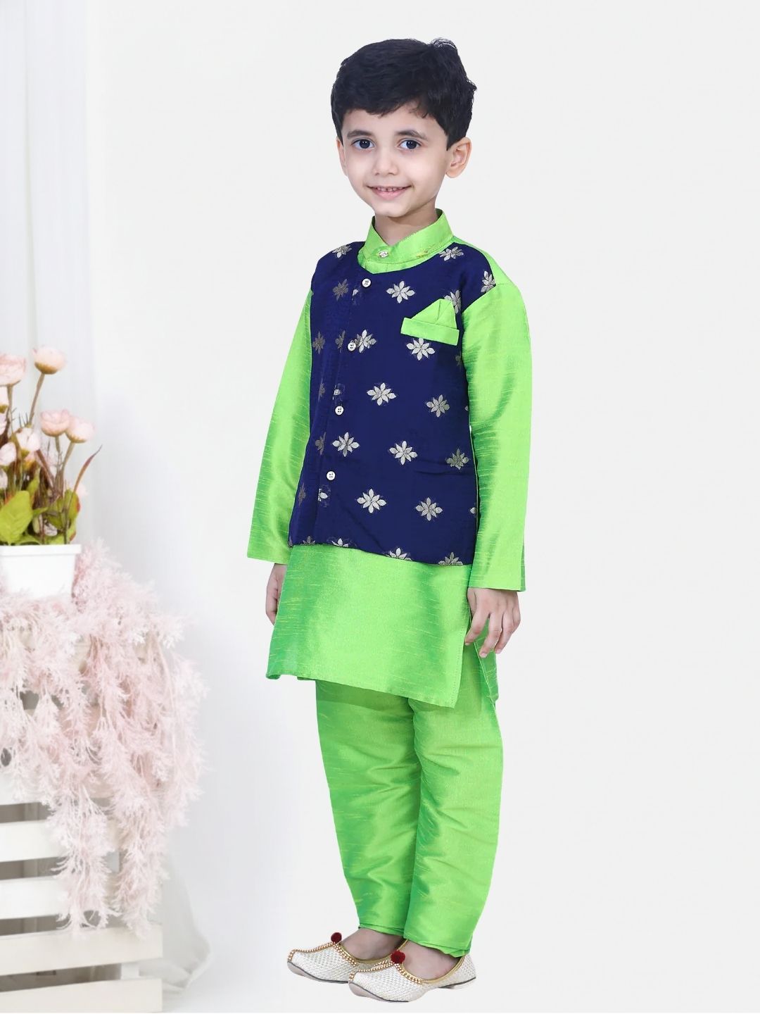 BownBee Attached Chiffon Jacket Full Sleeve Kurta Pajama For Boys - Green
