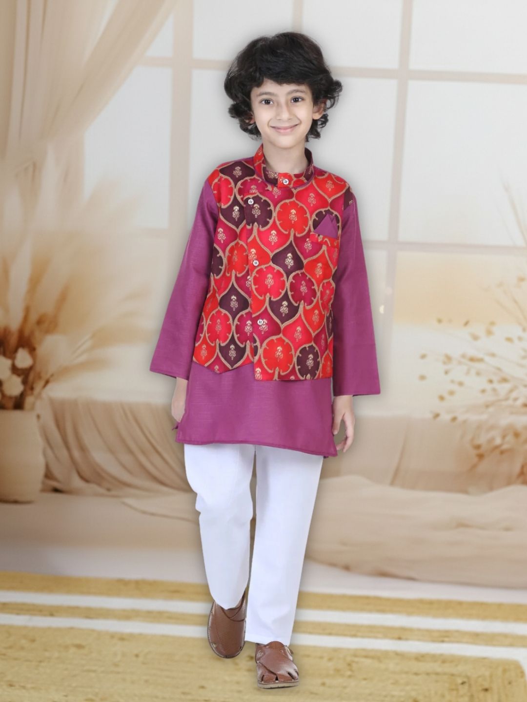 BownBee Pure Cotton Attached Jacket Kurta Pajama for Boys- Purple