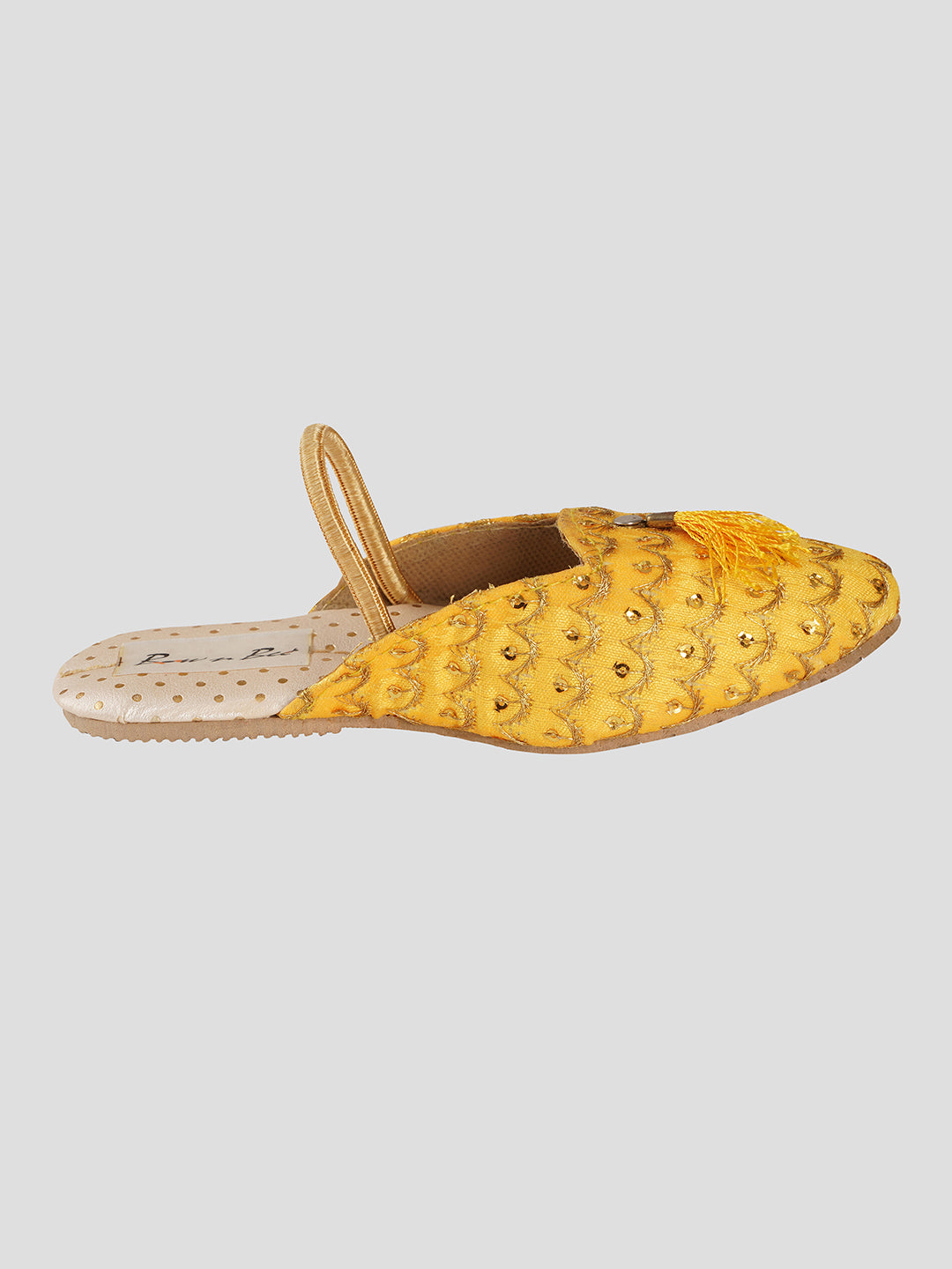 BownBee EmbroideRed Kids Back Open Jutti for Girls- Yellow