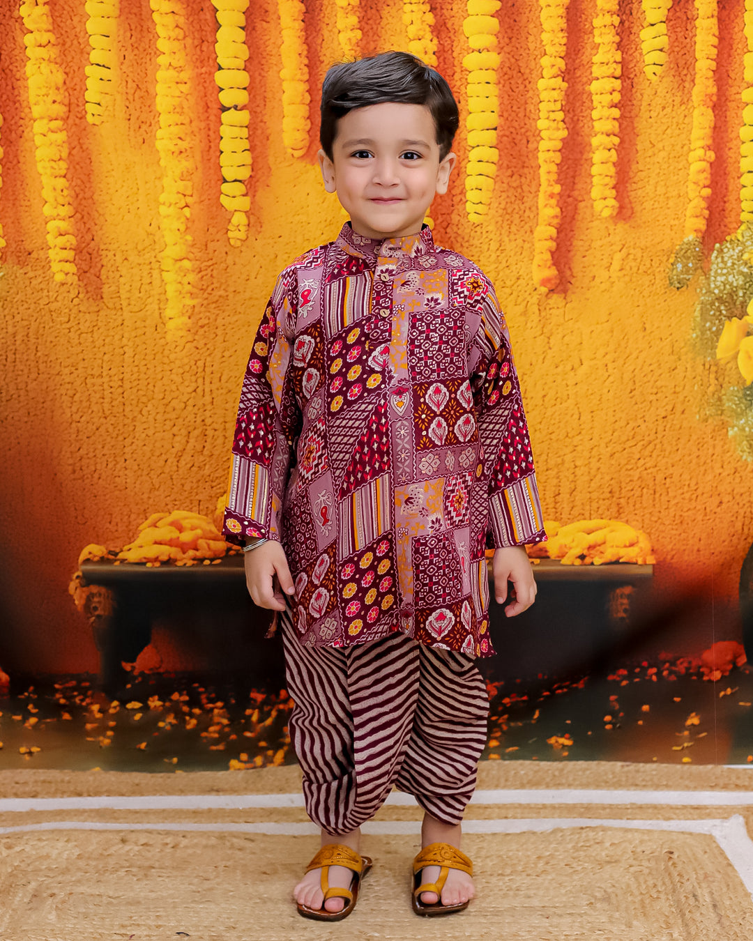 BownBee Cotton Full Sleeve Kurta with Dhoti for Boys - Purple