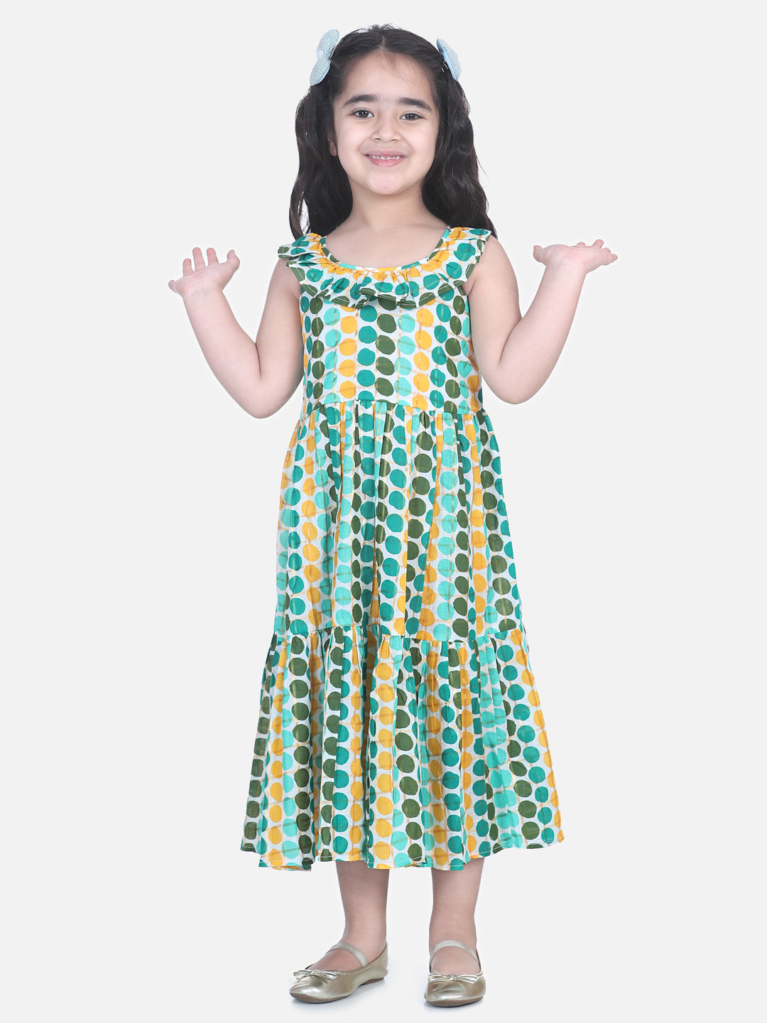 BownBee Polka Dot Tier Halter Neck Gown - Green