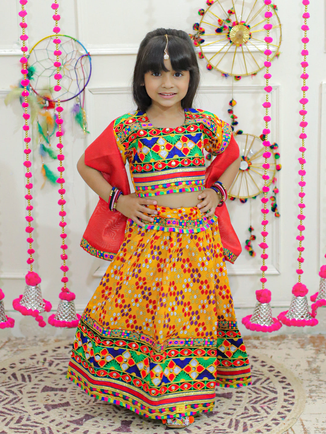 BownBee Bandhani Print Cotton Lehnga Choli with Dupatta- Yellow