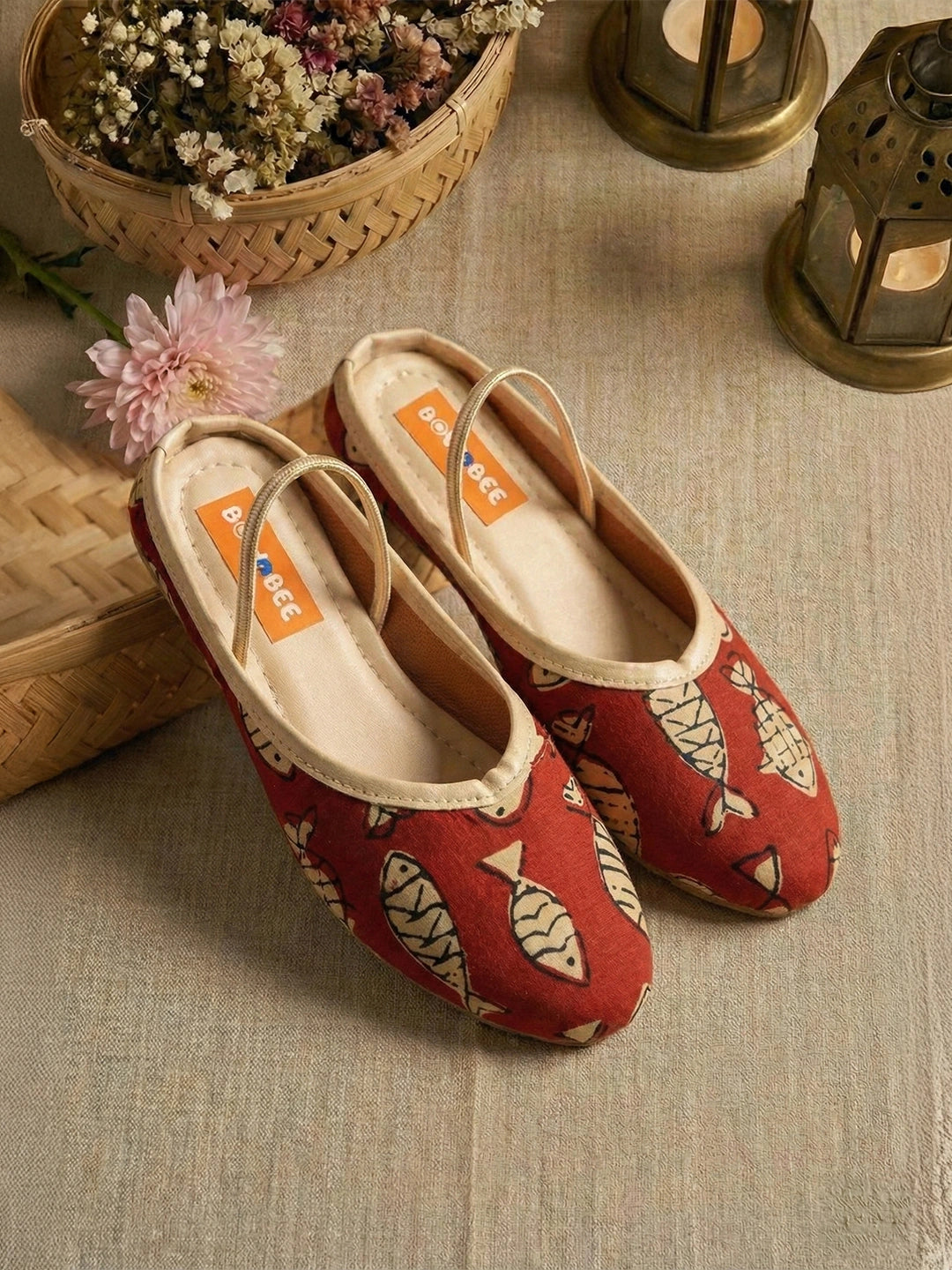 BownBee Fish Print Slippers For Girls - Red