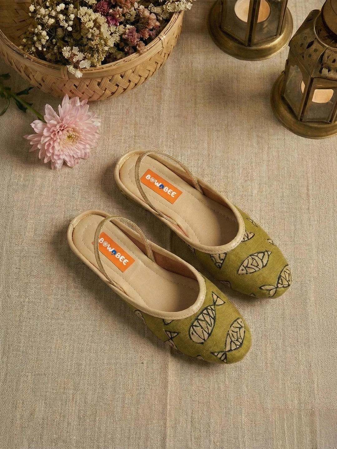 BownBee Fish Print Slippers For Girls - Mustard