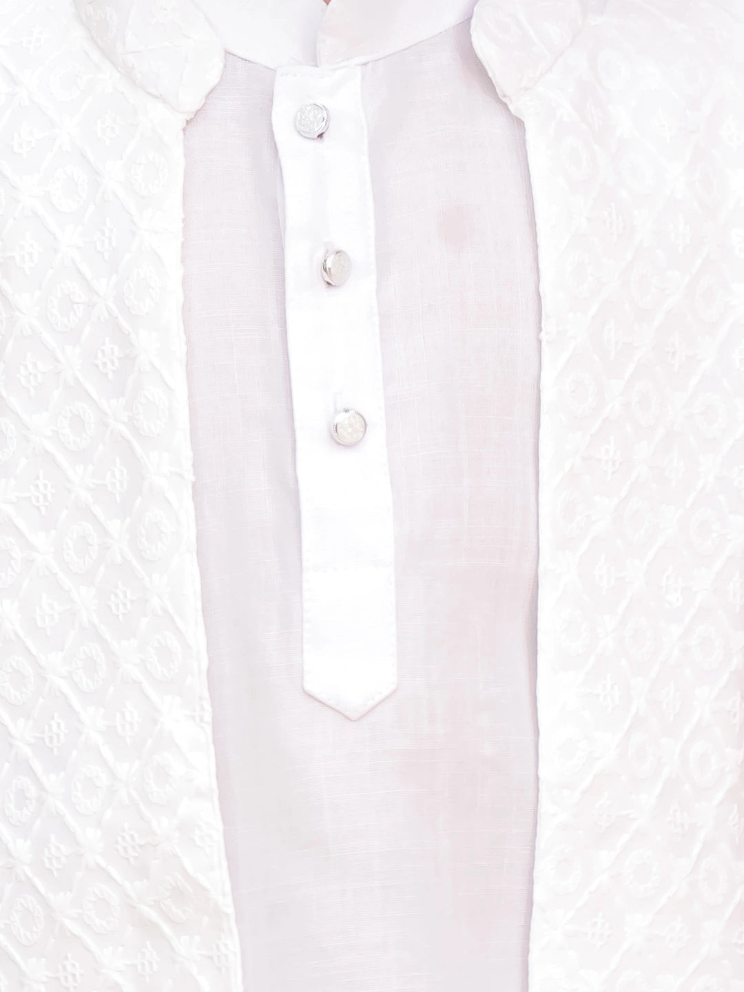 Elevate your little one's festive wardrobe with the BownBee Chikakari Attach Jacket with Kurta Pajama Set in vibrant yellow. This ensemble features intricate chikankari embroidery on a finely tailored jacket, paired with a comfortable kurta and pajama, blending traditional craftsmanship with modern style. Perfect for special occasions, it offers both elegance and ease, ensuring your child looks distinguished while staying comfortable throughout the day.