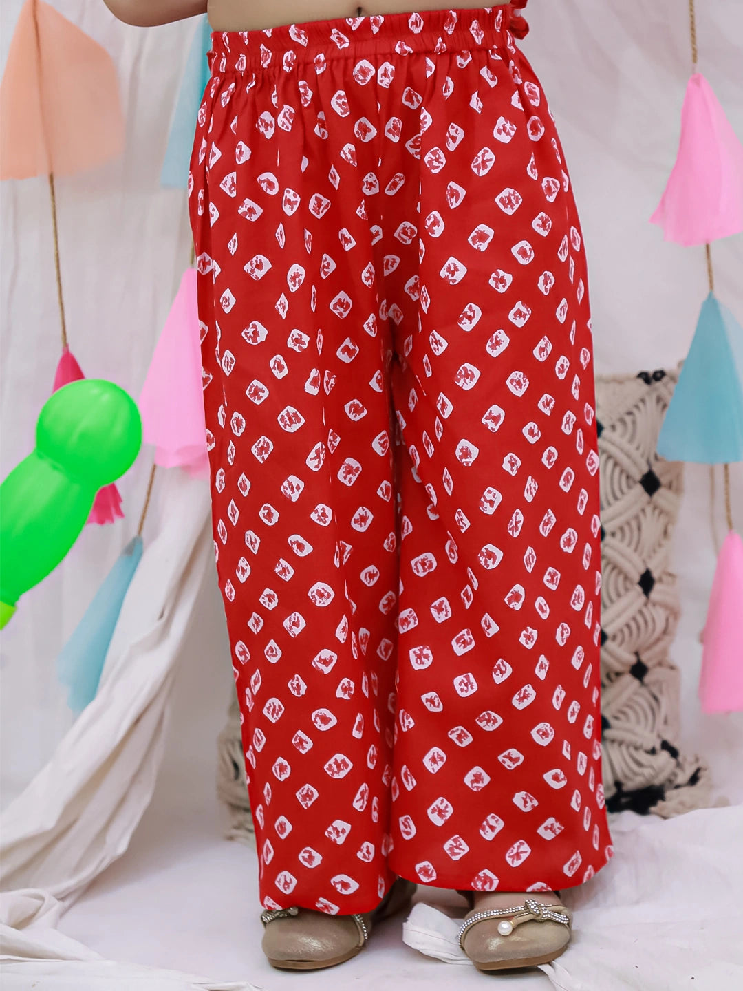 BownBee Pure Cotton Badhni Crop Top  With Plazao Set For Girls - Red
