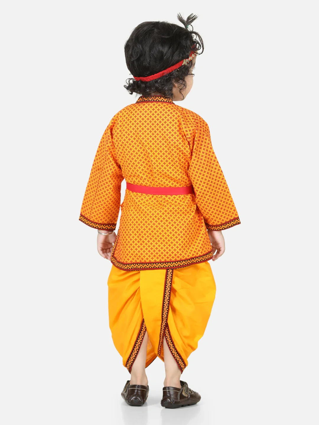 BownBee Cotton Angrakha Kanhaiya Dress With Bansuri,Mukut & Band- Yellow