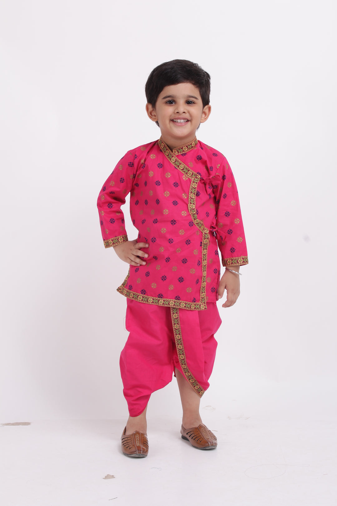 BownBee Cotton Kanhaiya Suit Dress For Baby Boy- Pink