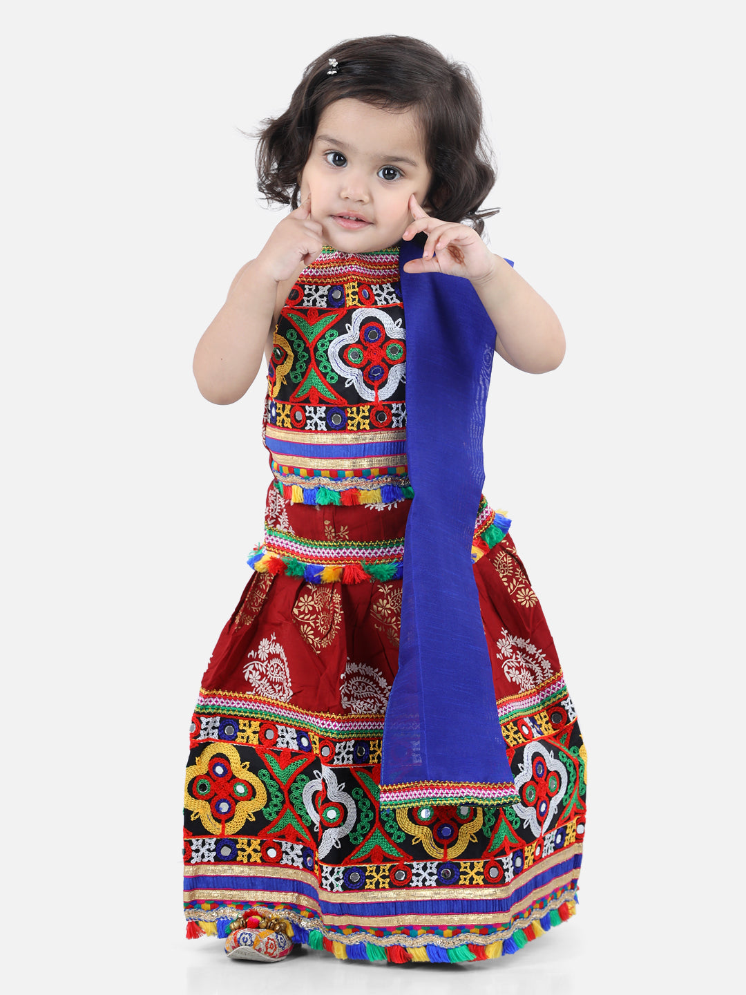 BownBee Gold Print Halter Neck Chaniya Choli- Maroon
