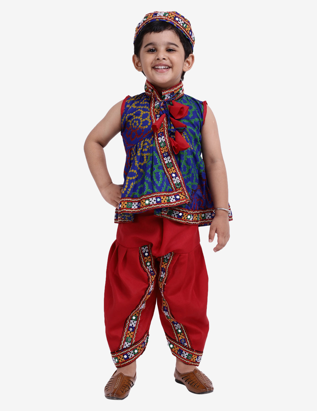 BownBee Kids Boys Navratri Dandiya Garba Printed Navratri Kedia Dhoti - Blue