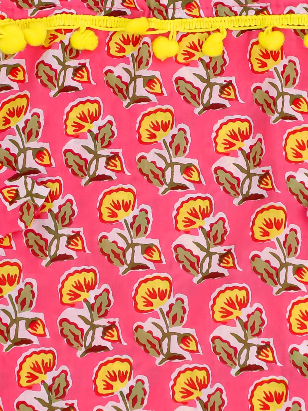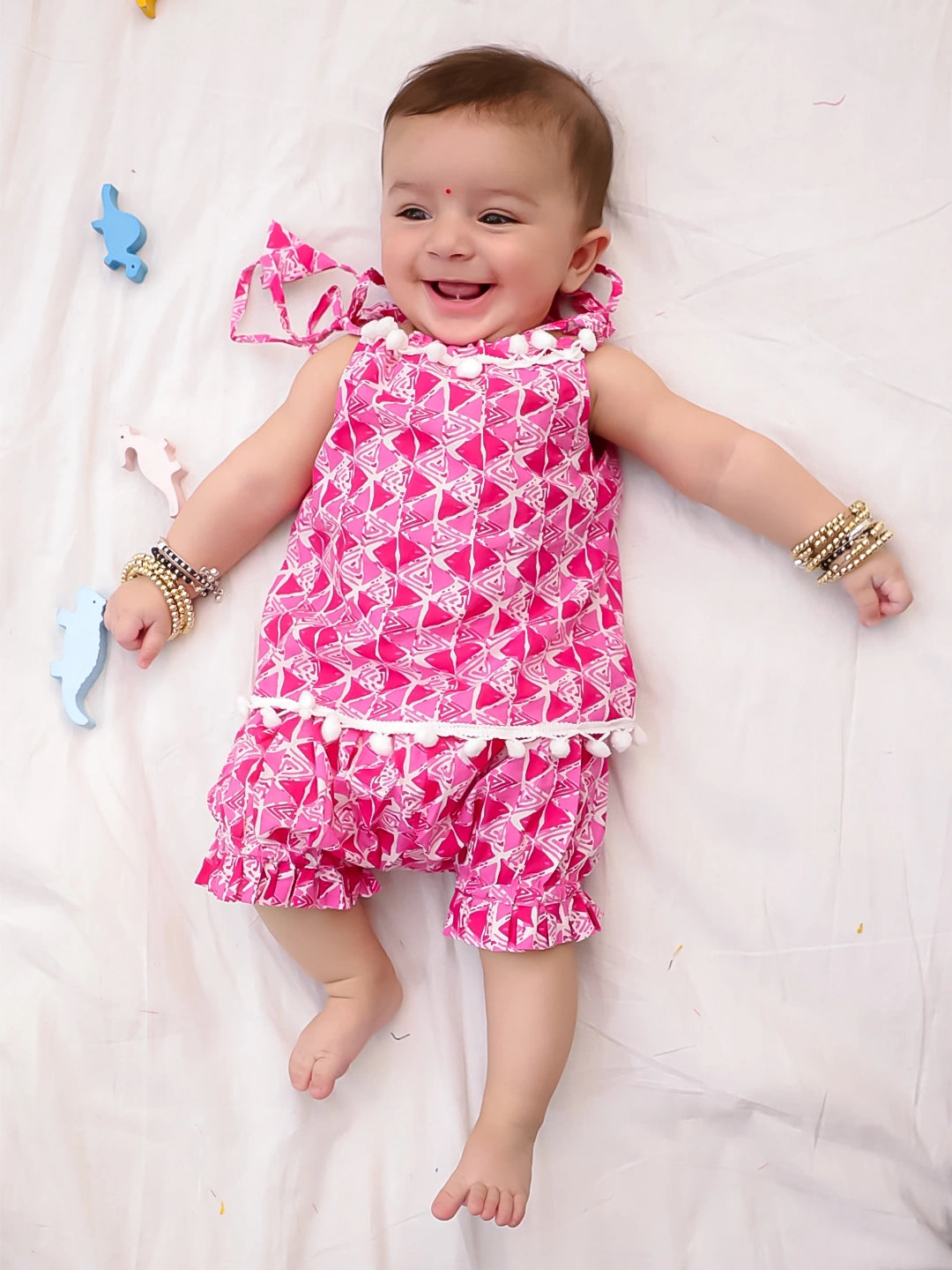 BownBee Infants Pure Cotton Printed Sleeves Jhabla Set for Girls | Soft & Comfortable Baby Wear- Pink