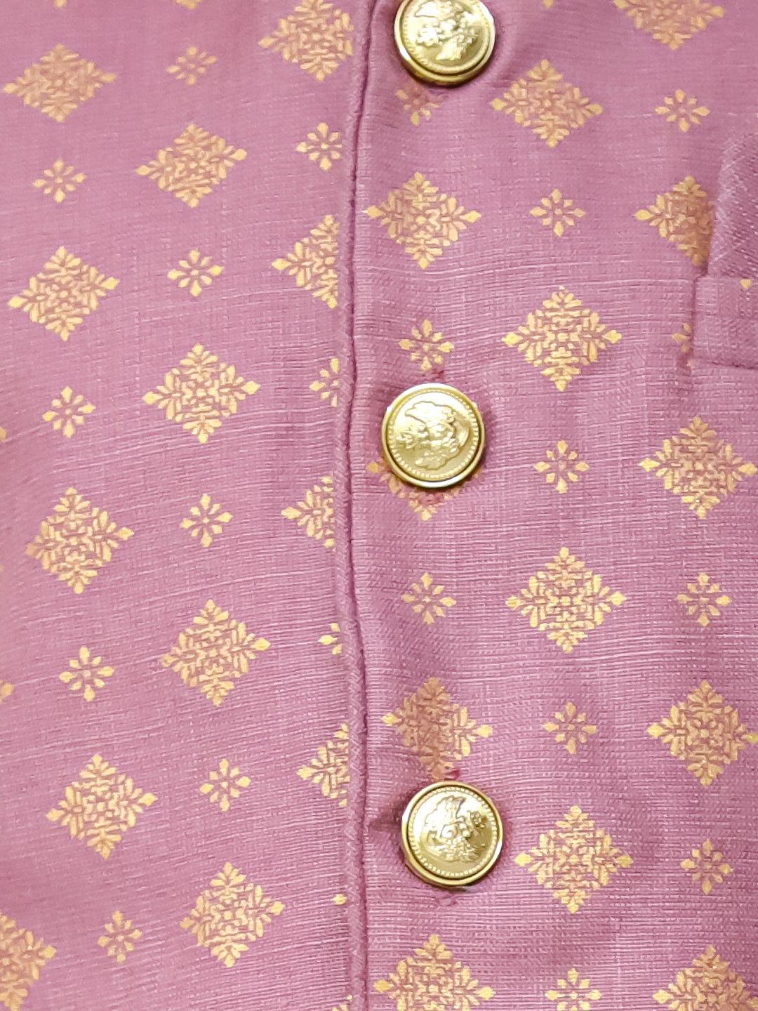 BownBee Printed Linen Jacket With Kurta Pajama Set For Boys - Red