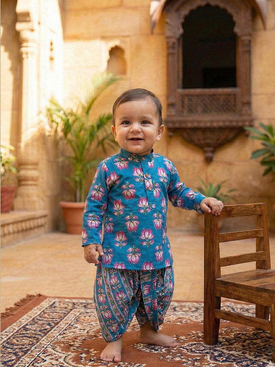 BownBee Pure Cotton Dhoti Kurta Set For Infant Boys - Sky Blue