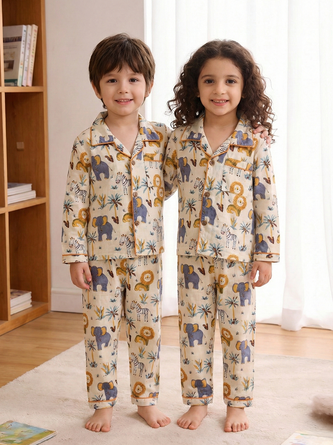 BownBee Pure Cotton Night Suits For Sibling - Off White Crafted from premium pure cotton, these elegant night suits offer unparalleled comfort for your children. The soft, breathable fabric ensures restful sleep while maintaining a refined aesthetic in a timeless off-white shade. Perfect for siblings, this coordinated set combines practicality with understated sophistication. Gentle on delicate skin and easy to care for, these suits are an essential addition to your child's sleepwear collection, blending quality craftsmanship with everyday elegance.