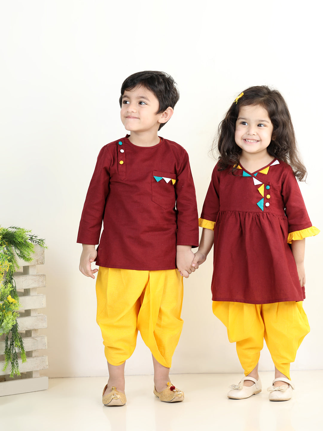 BownBee Sibling Cotton Dhoti Kurta For Boys Kurti with Dhoti for Girls-Maroon