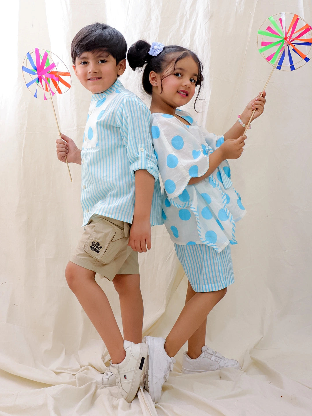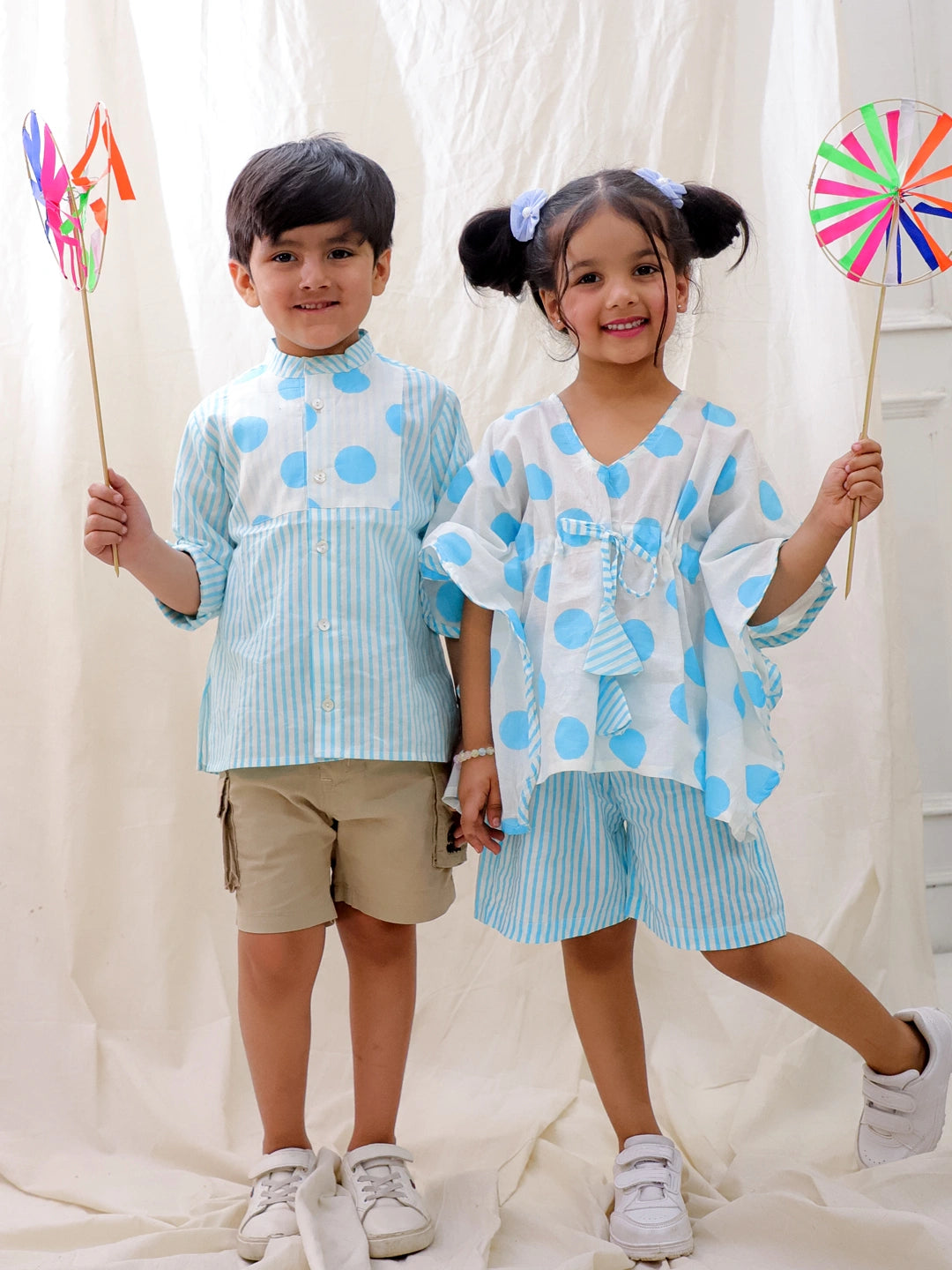 Elevate your little ones' style with the BownBee Summer Polka Dots Short Kurta & Skirt Top Sibling Set in Pink. Designed for siblings, this set features a charming polka dot print and is perfect for warmer days. Let them stand out in this elegant and exclusive ensemble.