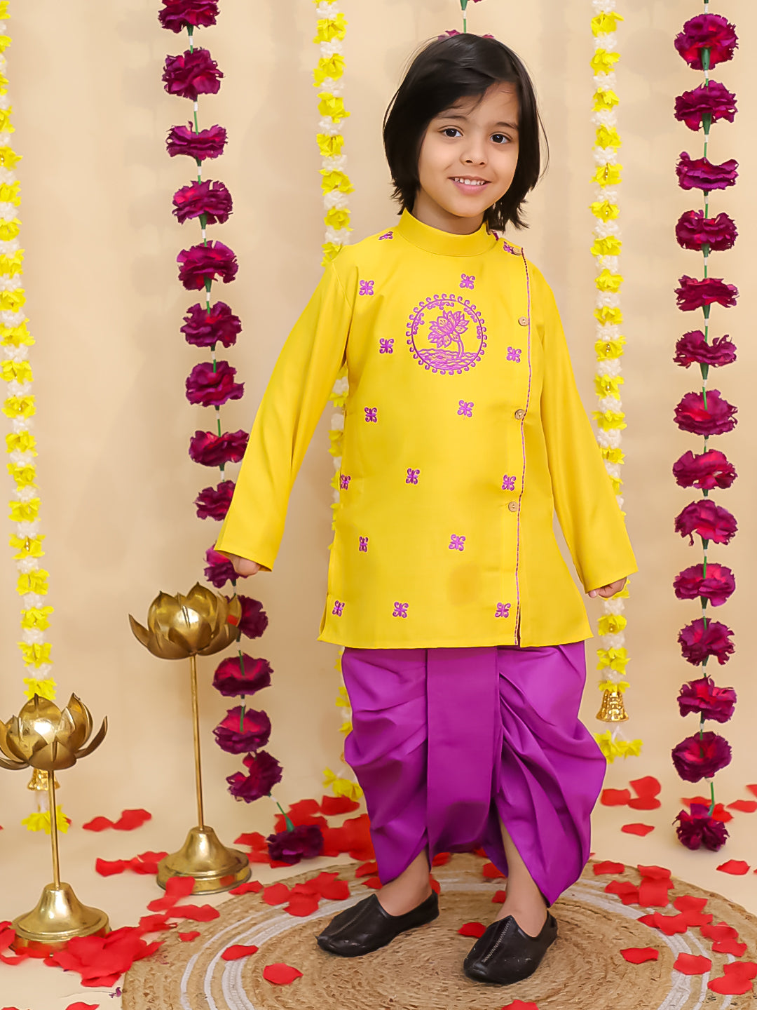 BownBee Bengali Kurta & Dhoti Set for Boys – Yellow