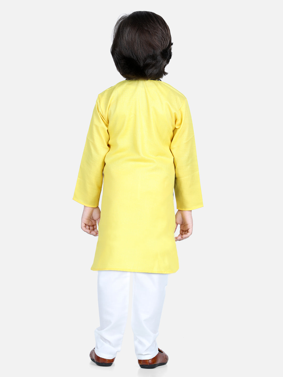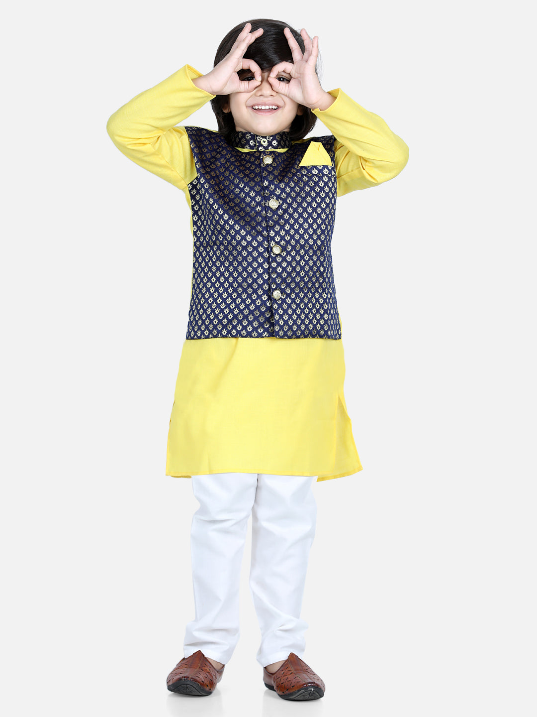 BownBee Attached Jacquard Jacket Kurta Pajama for Boys- Yellow