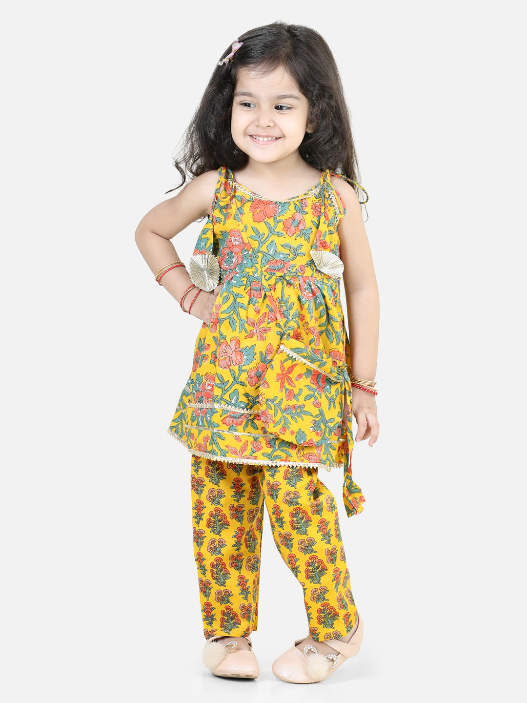 BownBee Cotton Kurti with Pant Dupatta Set for Girls- Yellow