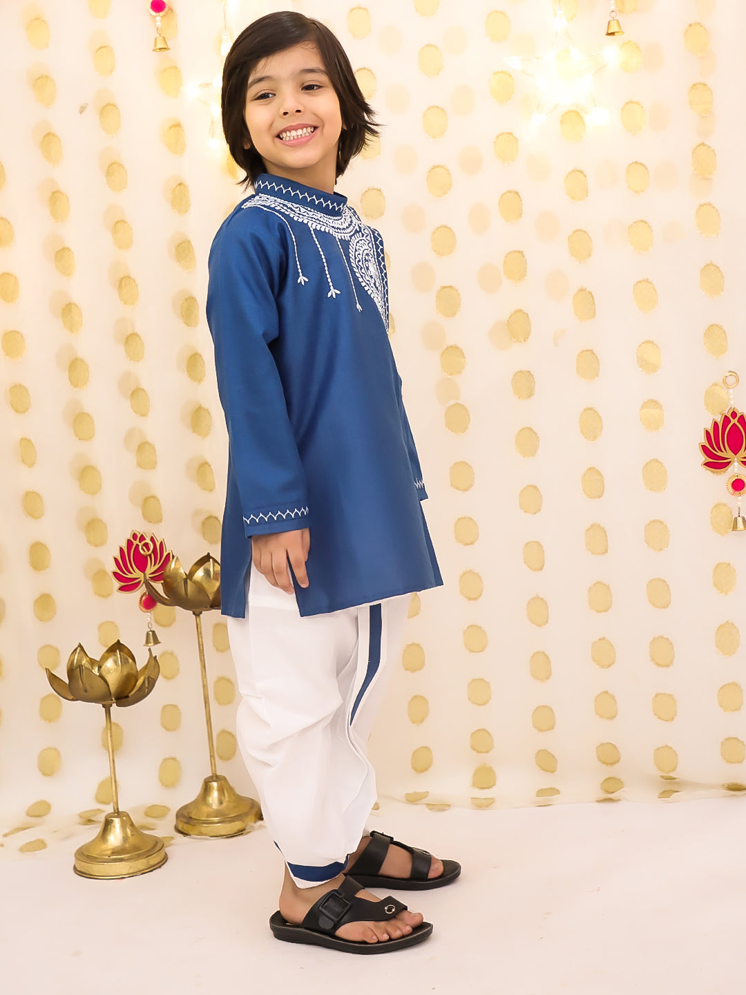 BownBee Embroidered Bengali Style Dhoti Kurta Set For Boys - Blue