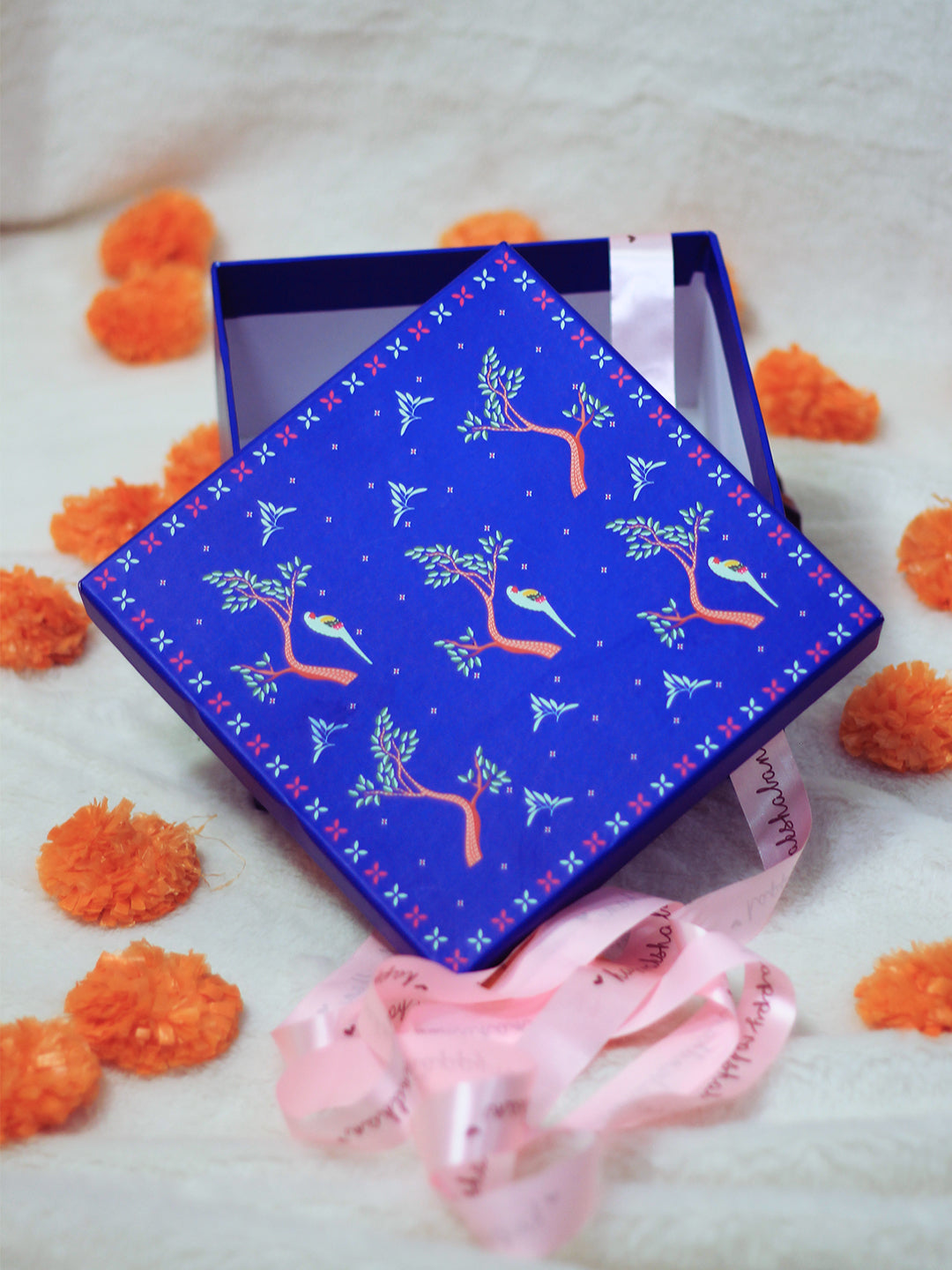 BownBee Festive Ethnic Printed Gift Box - Blue