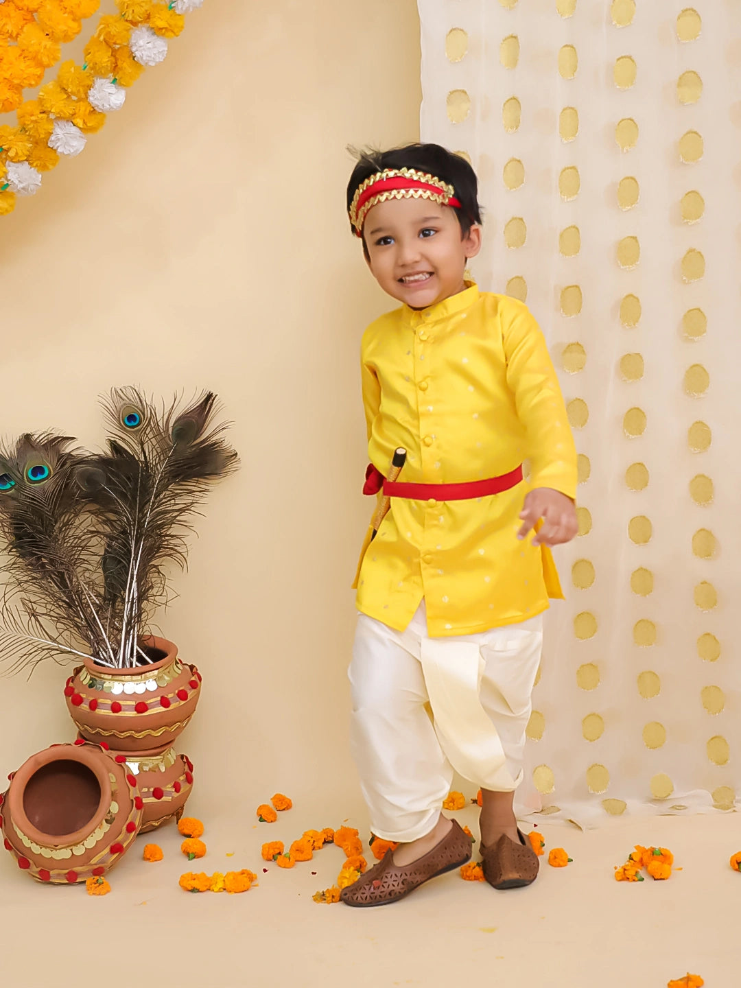 Elevate your little one’s festive wardrobe with the BownBee Full Sleeves Dhoti Kurta Set in vibrant yellow. Crafted for comfort and style, this ensemble blends traditional charm with a refined silhouette, perfect for special occasions. The full sleeves add a touch of elegance, while the dhoti ensures ease of movement, making it an ideal choice for celebrations.