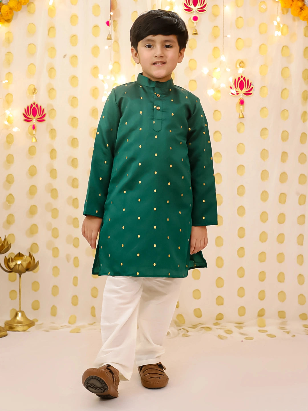 BownBee Festive FullSleeves Silk Kurta Pajama Set For Boys - Green
