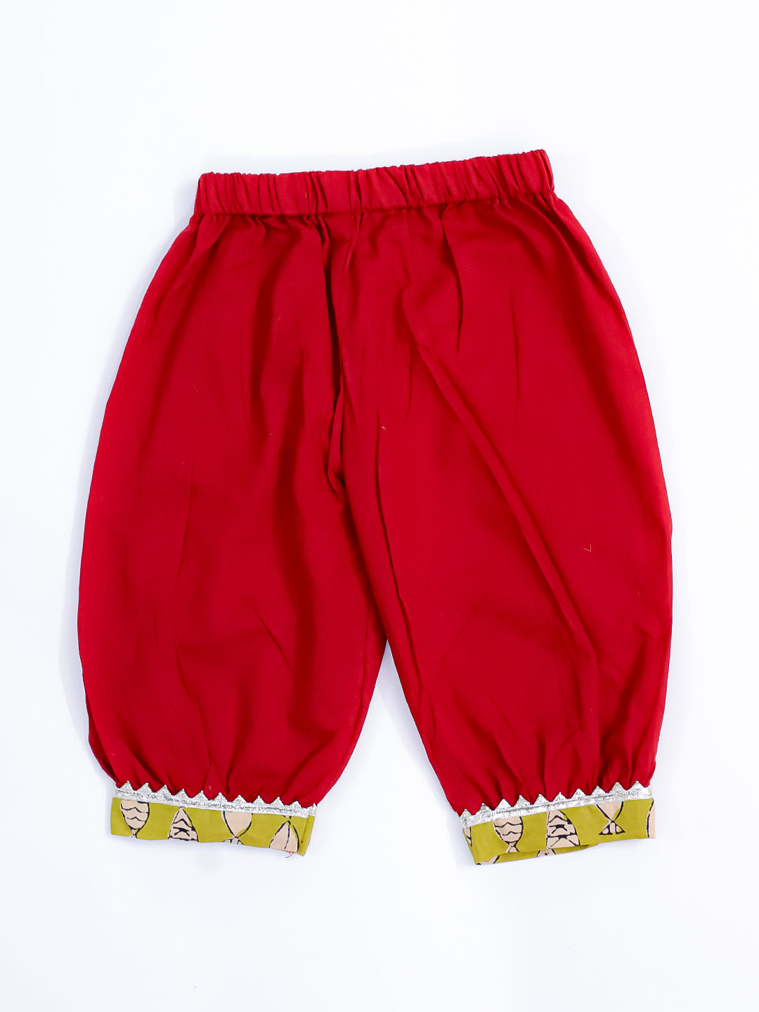 BownBee Fish Fun Dhoti Kurta & Fin-Tastic Kurta With Harrem Sibling Set - Red