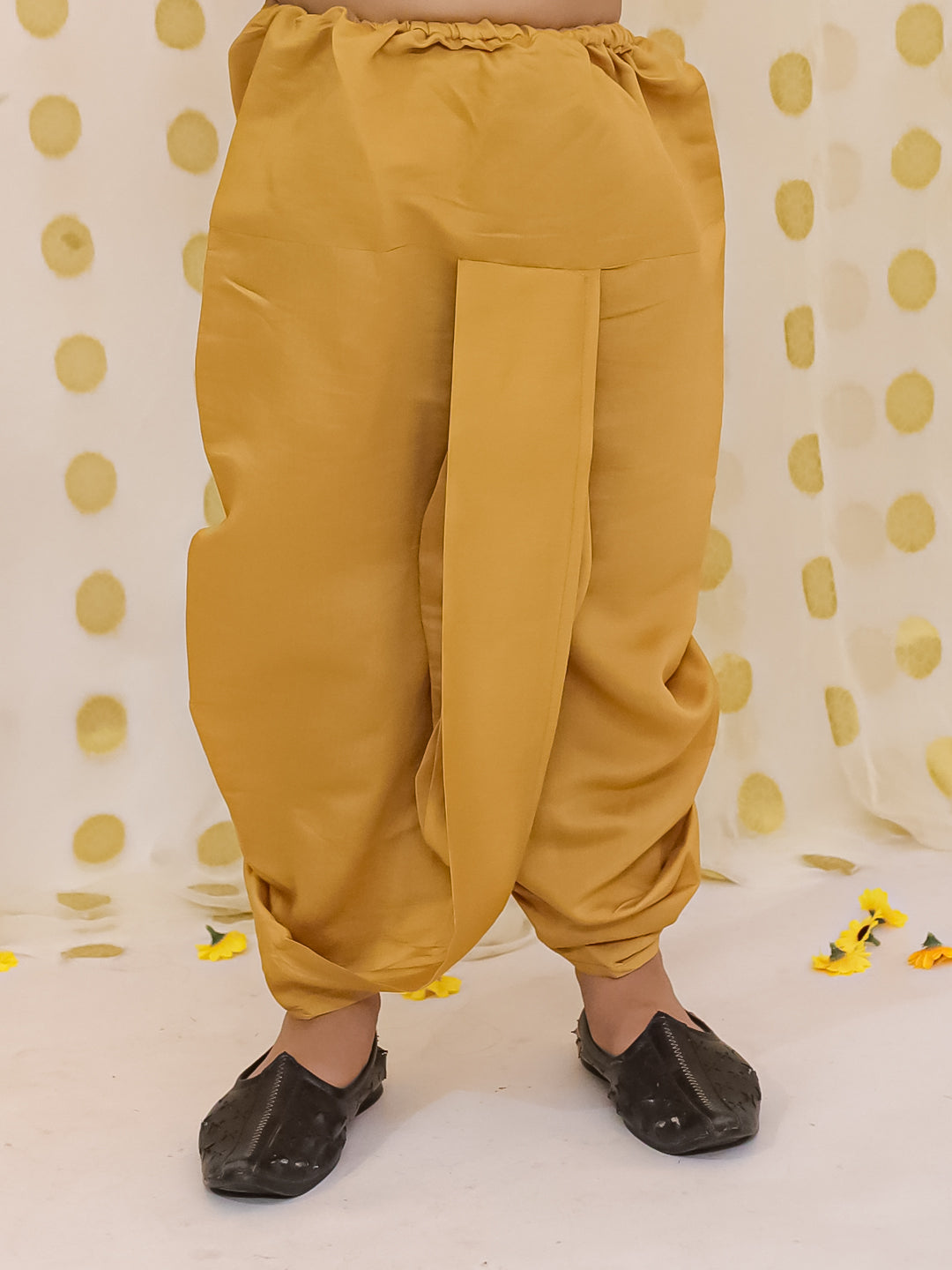 BownBee Festive Chanderi Jacket With Solid Dhoti Kurta Set For Boys - Mustard