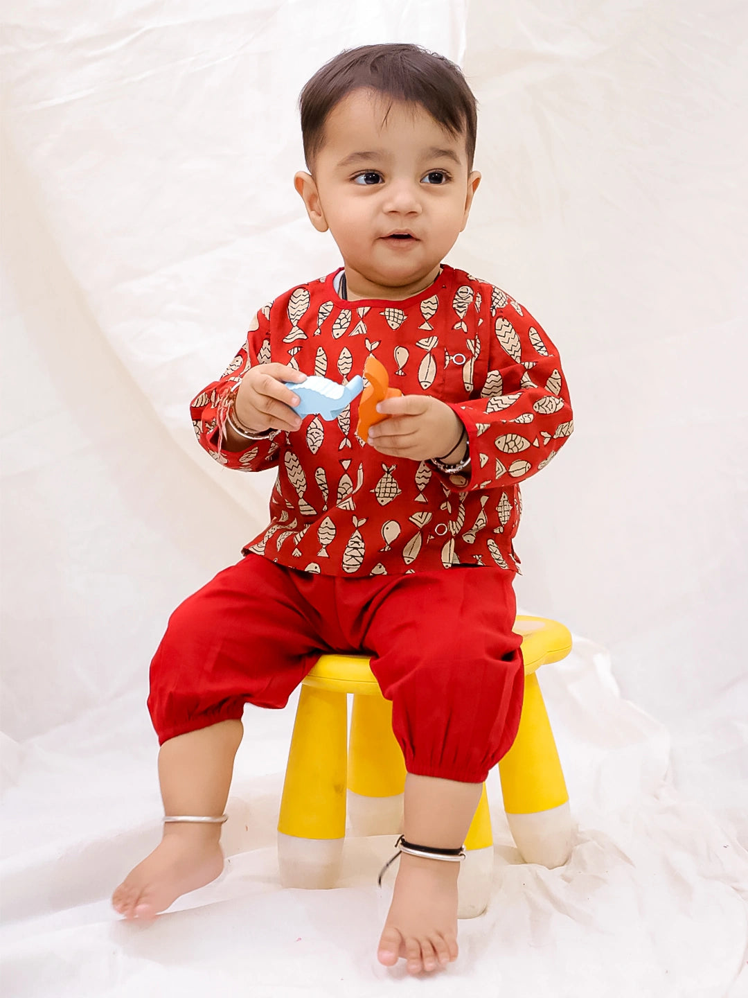 Experience luxury and sophistication with our BownBee Full Sleeves Jhabla & Harem Set for infant boys. Made with the finest maroon fabric, this set features full sleeves for added warmth and comfort. Elevate your little one's style with this exclusive and tasteful ensemble.