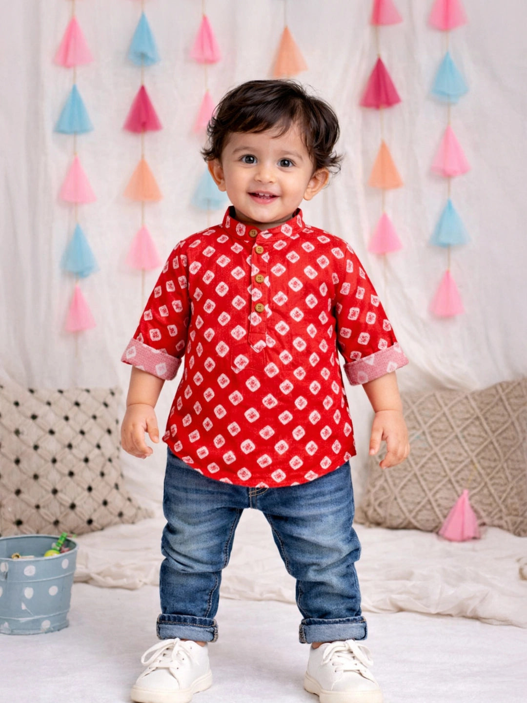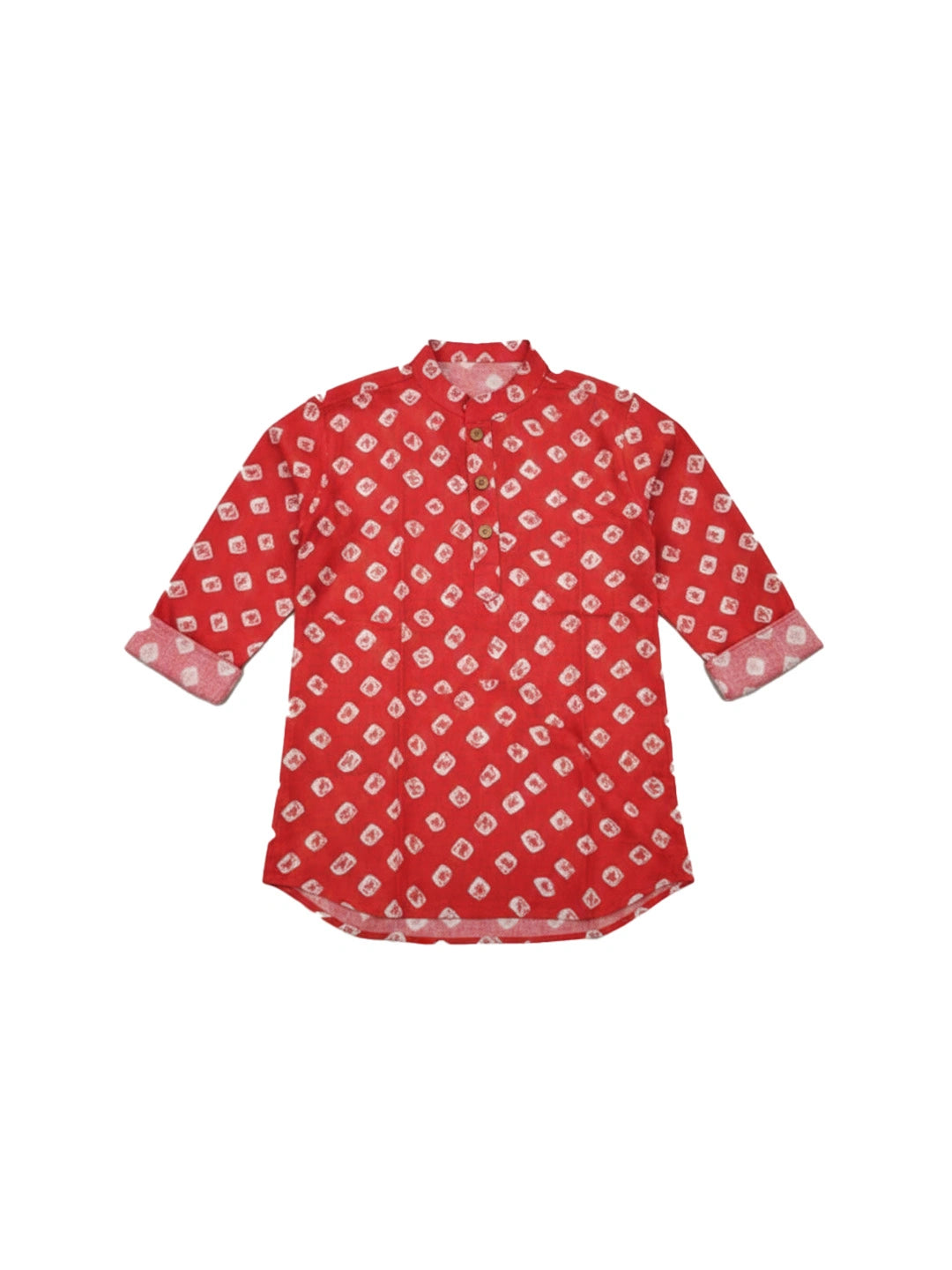 BownBee Fullsleeves Bandhni Short Kurta For Infant Boys - Red