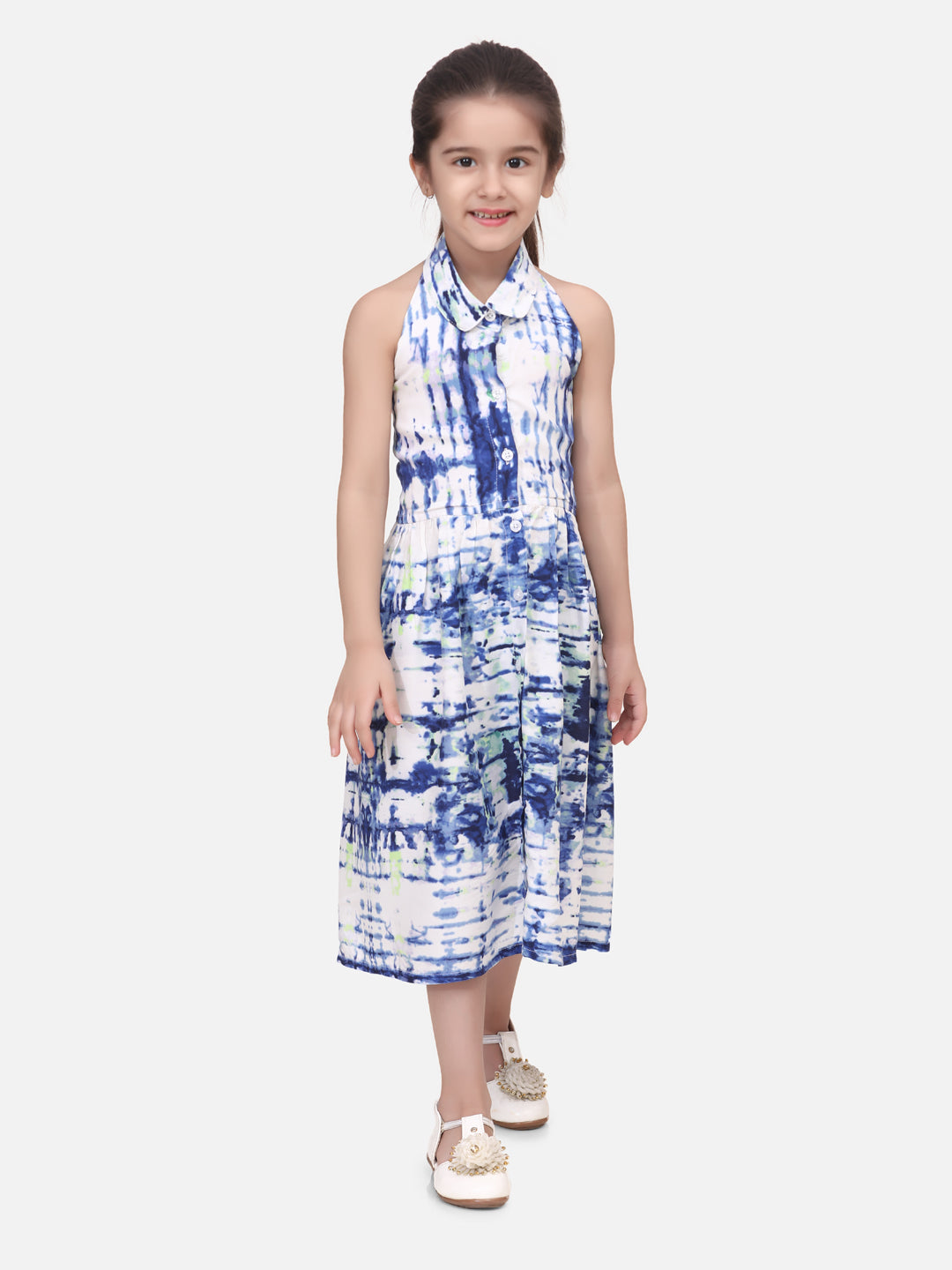 BownBee Halter Neck Collar Frock For Baby Girls - Indigo