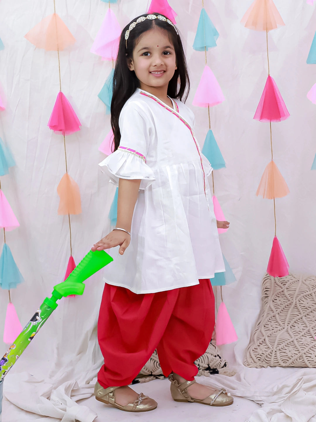 BownBee Indo-Western Angarakha Kurti With Dhoti For Girls - White