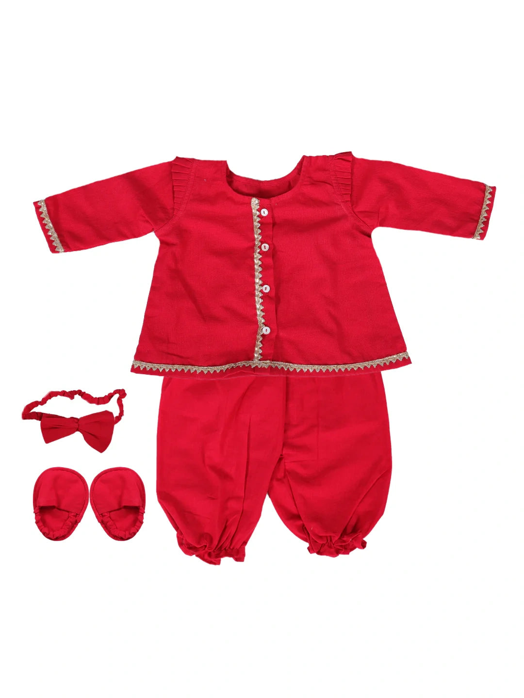 Bownbee Girls Pure Cotton Ethnic Set For Infants - Red
