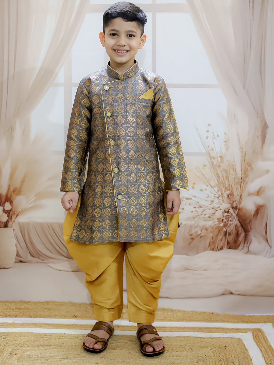 Bownbee Jacquard Full Sleeve Sherwani with Salwar for Boys- Gray