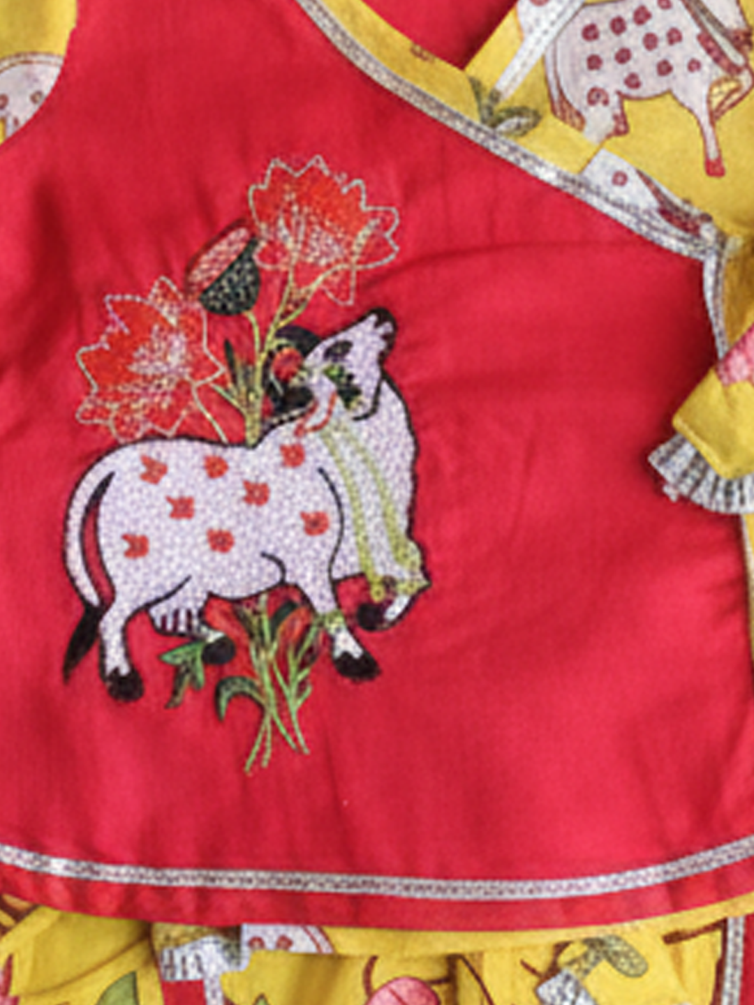 This elegant ethnic suit set for infant girls combines pure cotton comfort with delicate embroidery in a charming pink shade. Designed to offer breathable softness ideal for sensitive skin, it ensures both style and ease throughout the day. Perfect for special occasions or festive moments, this ensemble embraces traditional flair with a refined touch.