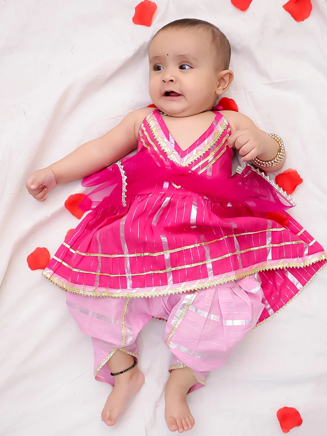 Bownbee Girls Cotton Ethnic Set For Infants - Stripes - Pink