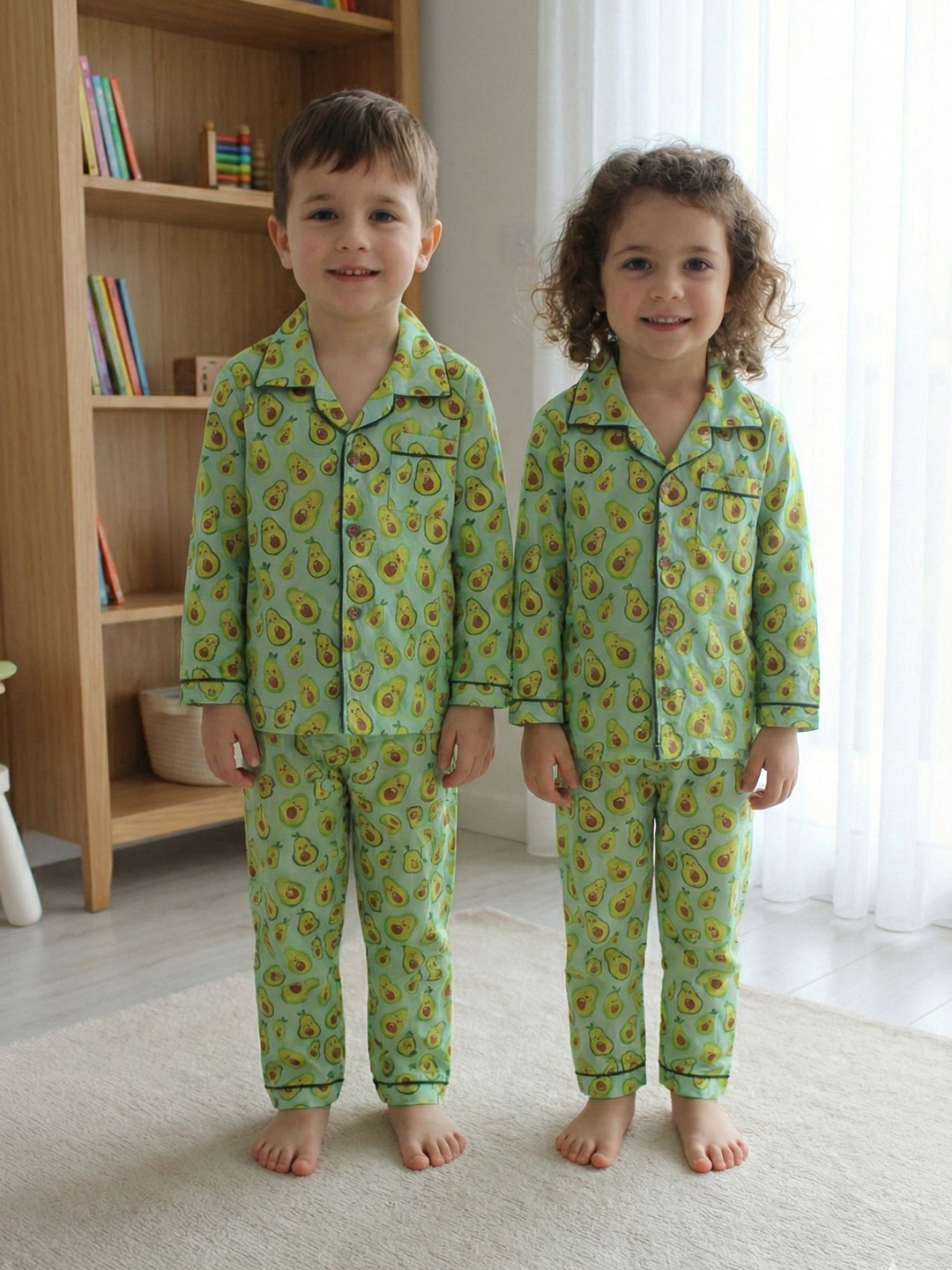 BownBee Pure Cotton Night Suits For Sibling - Green offer timeless comfort for your children's bedtime routine. Crafted from premium pure cotton, these coordinated sets ensure breathability and gentle care for delicate skin. The sophisticated green hue complements any bedroom aesthetic while the matching sibling design creates a charming, unified look. Perfect for creating special bonding moments, these night suits combine durability with everyday elegance, making bedtime a cherished ritual for your little ones.