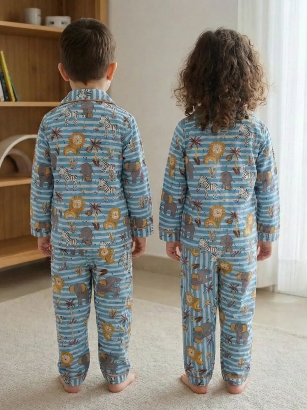 BownBee Pure Cotton Night Suits For Sibling - Sky Blue