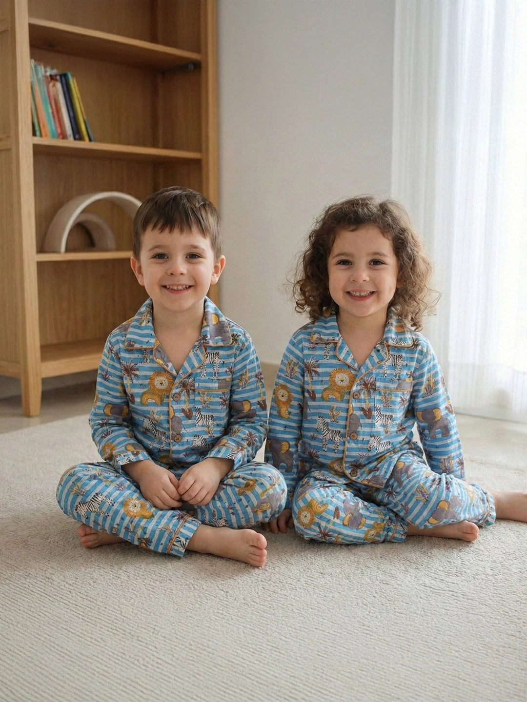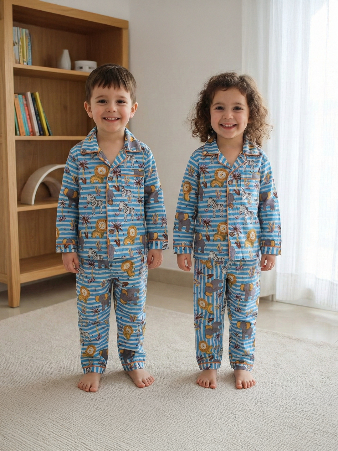 BownBee Pure Cotton Night Suits For Sibling - Sky Blue offer timeless comfort for your children's bedtime routine. Crafted from premium pure cotton, these coordinated sets ensure breathability and gentle care for delicate skin. The sophisticated green hue complements any bedroom aesthetic while the matching sibling design creates a charming, unified look. Perfect for creating special bonding moments, these night suits combine durability with everyday elegance, making bedtime a cherished ritual for your little ones.