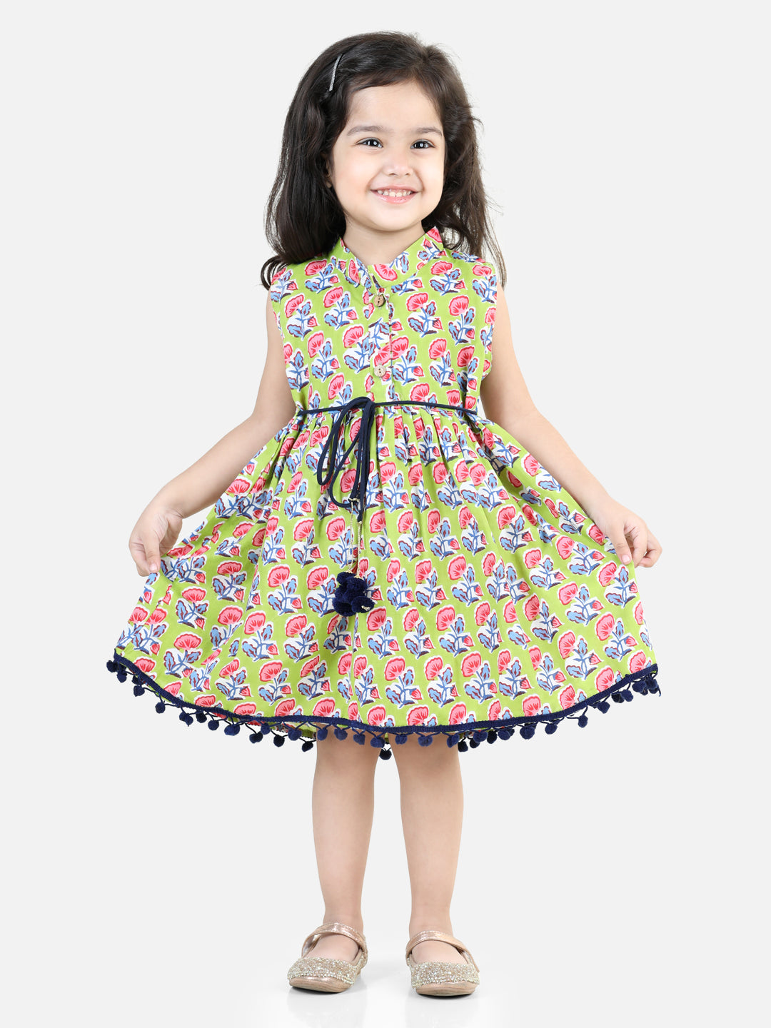 BownBee Pure Cotton Printed Frock and Dresses for Girls- Green