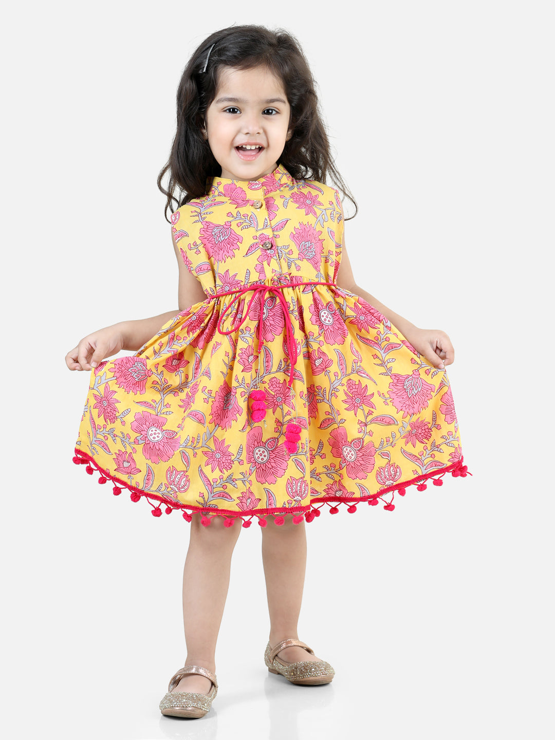 BownBee Pure Cotton Printed Frock and Dresses for Girls- Yellow