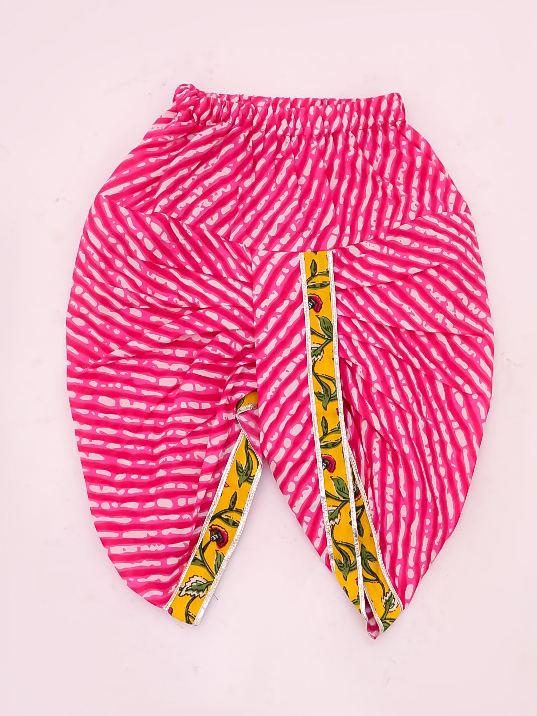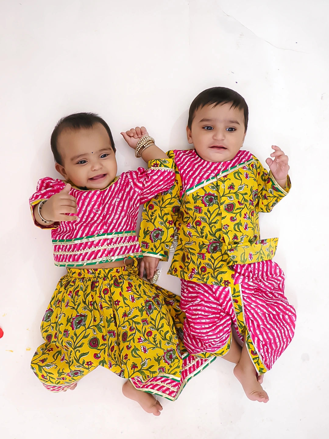 BownBee Pure Cotton Printed Lehenga Choli & Kurta Dhoti Sibling Set For Infants - Pink