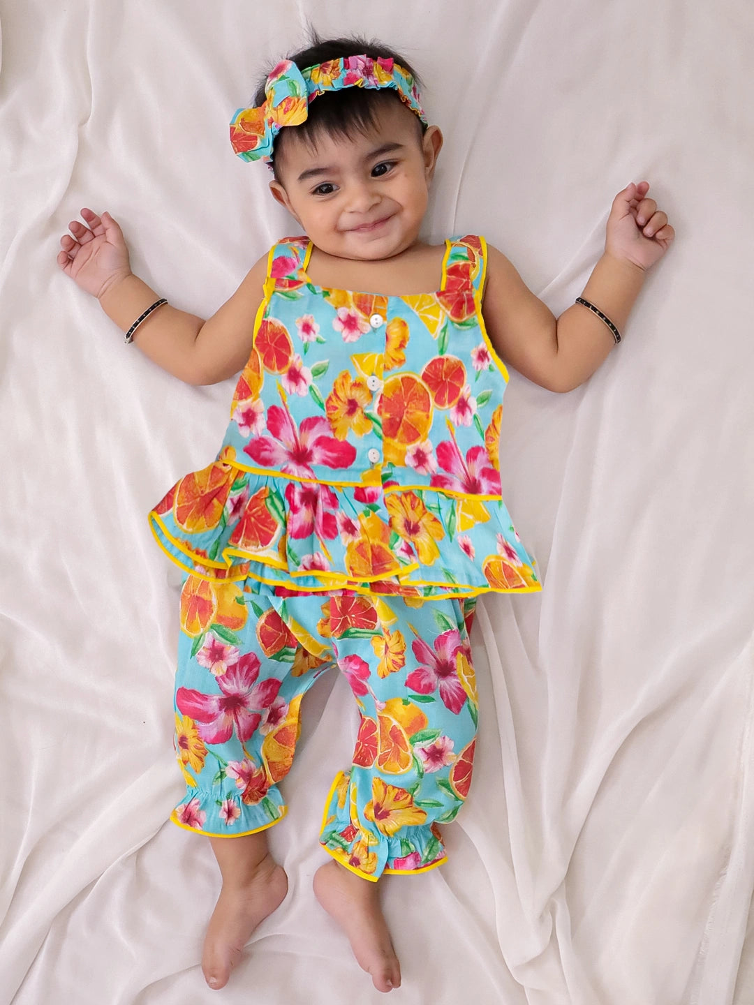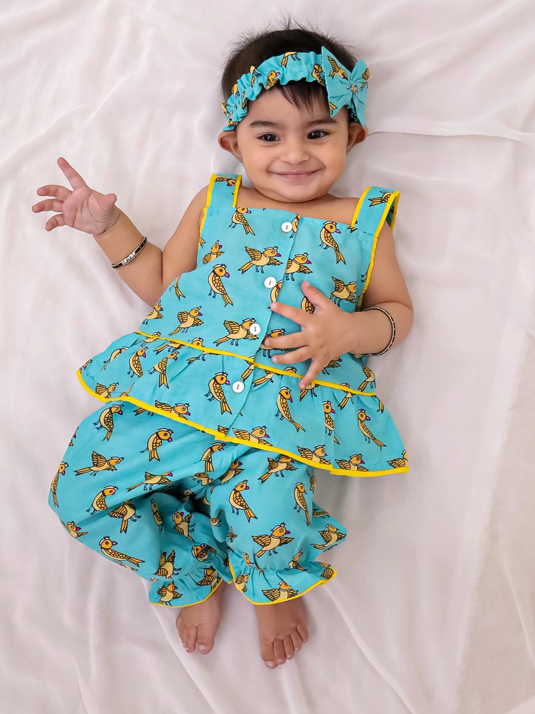 BownBee Pure Cotton Printed Top & Harrem With Hairband Set For Infant Girls