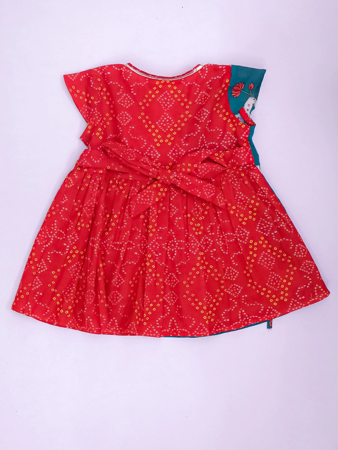 BownBee Pure Cotton Ruffle Sleeves Dress With Hairband For Infants- Red